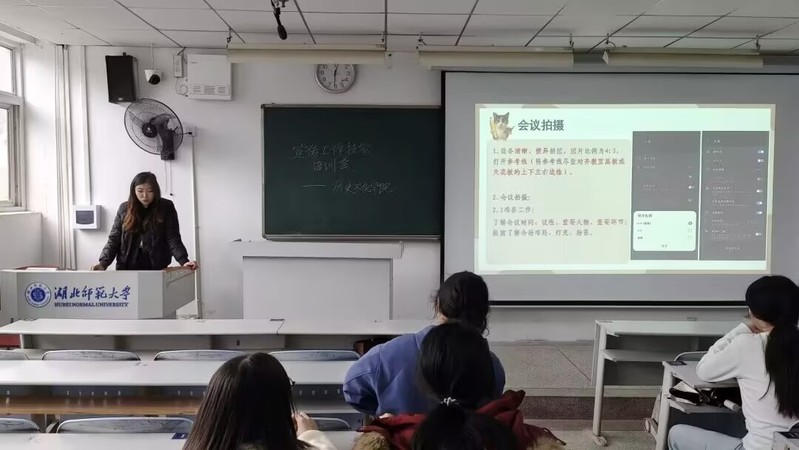 本次培训核心环节由刘一璇主讲,她结合自身丰富的宣传实践经验,围绕通讯稿撰写、活动拍摄技巧、公众号运营三大核心内容展开系统讲解。她从结构框架、语言规范、史实严谨性等角度明确通讯稿写作的注意事项,结合历史学科特色拆解写作要点,强调内容真实、逻辑清晰、文风庄重。她分享构图、光线、抓拍时机等实用方法,指导同学们熟练掌握拍摄技巧,强调大家学会用镜头精准呈现活动现场与历史人文氛围;针对公众号运营,她讲解排版规范、选题策划、推送节奏与互动技巧,助力参训同学掌握新媒体传播规律。整场分享干货满满、贴合实际,有效解决了同学们在宣传工作中遇到的常见问题。