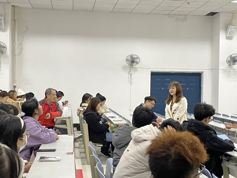 会议伊始,喻卓博士简单地介绍了她在湖师学习时的生活故事,以学姐的身份十分谦逊地介绍了她的学习经历,以及爱情经历,惹得现场同学们频频欢笑,气氛十分轻松。随后,喻卓博士回答了几位同学提的问题。其中,重点回答了“是广读书还是精读书”,以及“如何读书”的问题。紧接着,喻卓博士及其丈夫提醒同学们在大学的学习生活中,要学会掌握正确的学习方法。注重学习的效率性和学习技巧,学会合理利用课下时间进行自主学习,并且强调看书的重要性。最后,喻卓博士留下了自己的联系方式,并亲切地表示同学们可以向她咨询日后考研的相关知识以及书单推荐。