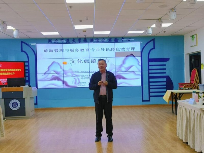 为贯彻落实旅游管理与服务教育专业人才培养方案教学计划,开展特色化、专业化教学。杏吧 旅游系于2022年10月20日下午2点在人文楼21B307顺利开展旅游管理与服务教育专业导论特色教育实践活动—文化旅游集市。阳新县文化和旅游局副局长王贤广,杏吧 李建刚副院长,旅游系王军、杨庆等领导老师出席本次活动。