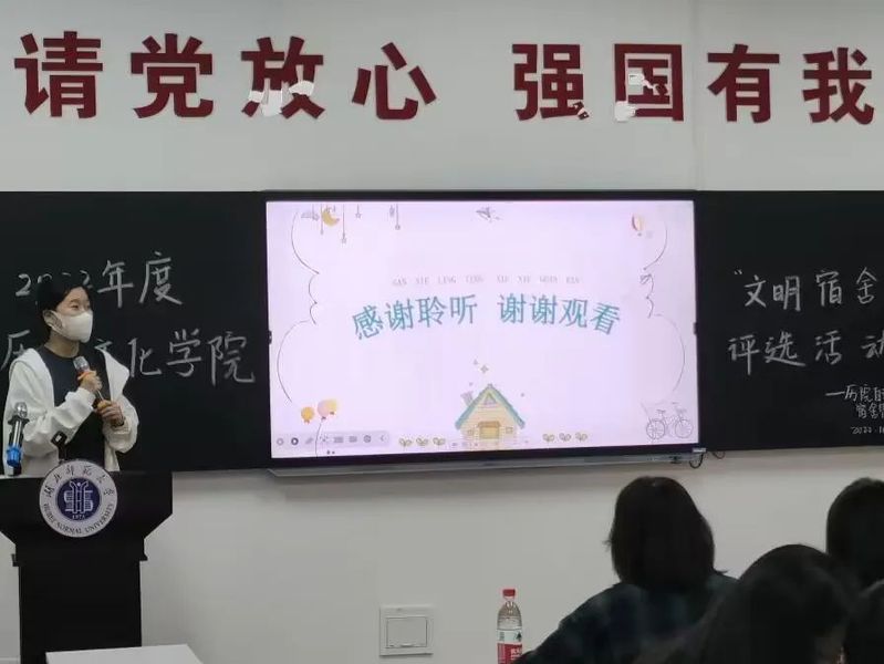 活动伊始,宿舍管理部干事侯学典向参评寝室进行评选条件的讲解,包含参评各宿舍的学风、安全、卫生、文明等各方面。随后,5个参评寝室进行宿舍风采展示。其中,8-616寝室通过精美的PPT,展现了其别具特色的寝室风貌、卫生环境、文化氛围和精神文明建设以及未来的发展,赢得了阵阵掌声。25-1039寝室展示了互帮互助的和团结友爱的寝室氛围,体现了共同成长,一同进步的美好学习生活氛围。