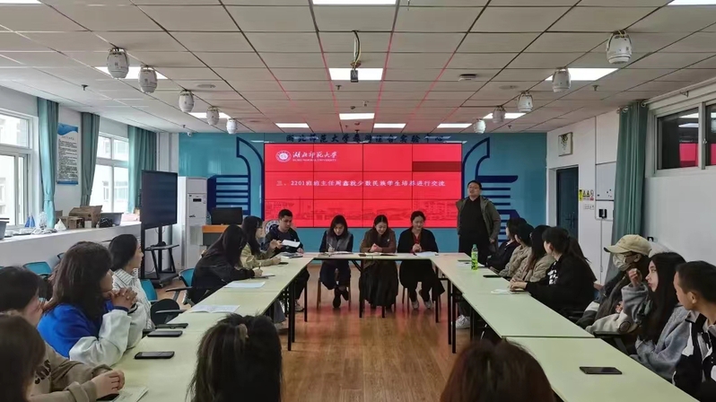 首先,辅导员王雅菲充分肯定了少数民族学生在校的优异表现,并对这样一群奔赴远乡的学生进行真切的问候。接着,学生党员白璇引领大家学习习近平总书记关于教育工作、民族工作重要论述摘编。随后,系主任周鑫就“相信老师”、“开放心态”、“广结好友”等几方面分享少数民族学生培养经验。 在之后的学生代表交流环节,同学们积极发言,讲述了自己在学校学习和生活等方面的感受,畅谈了在各方面取得的成绩和收获以及面临的困难和问题,对学校的改革发展提出了宝贵的意见和建议。表示“在老师和同学们这样的爱护和关爱下,我们要更加地努力,用所学的一技之长回报学校、回报社会。”