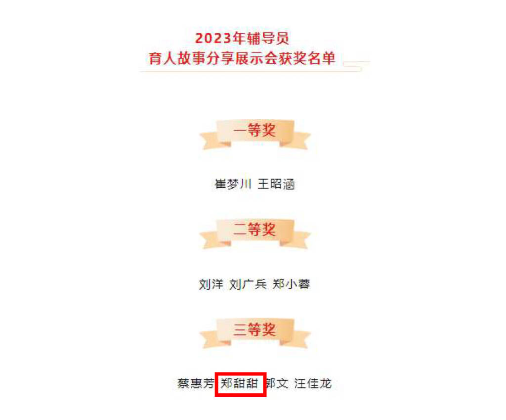 再次衷心祝贺党委副书记黎哲老师及辅导员郑甜甜老师获奖!“鹤发银丝映日月,丹心热血沃新花。”正是因为你们的辛勤耕耘,才有历院的无限风景!