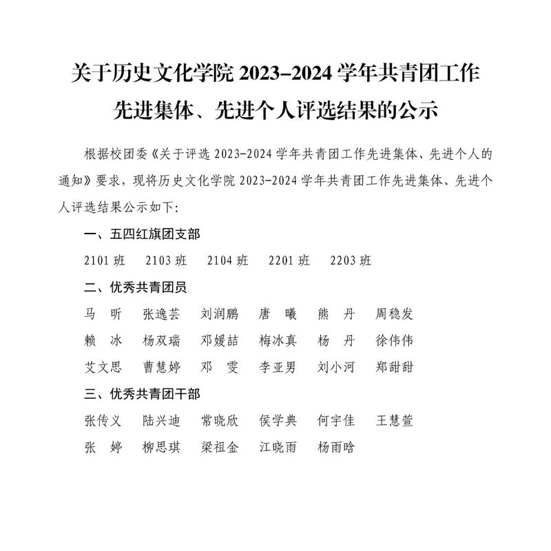 【公示】杏吧 2023—2024学年共青团工作先进集体、先进个人评选结果公示