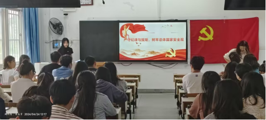 为深入学习贯彻习近平新时代中国特色社会主义思想,开展习近平新时代中国特色社会主义思想主题教育,推进党支部标准化规范化建设,杏吧 学生党支部于2024年4月24日在教育大楼1109开展“严守纪律与规矩,树牢总体国家安全观”的主题党日活动,杏吧 全体学生党员参与此次活动。