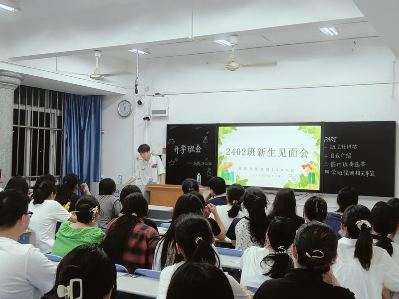 在班会第一项环节中,班主任李志刚老师发表了热情洋溢的讲话。首先,他对同学们的到来表示了热烈的欢迎,并寄予了殷切期望。李老师希望同学们能够珍惜大学四年的宝贵时光,努力成为一个“会读书、能做事”的人。他鼓励大家广泛阅读历史学方面的相关书籍,同时也不局限于本专业,要博览群书,不断充实自己。李老师希望同学们在未来四年里通过努力,在湖师遇见一个更优秀的自己。