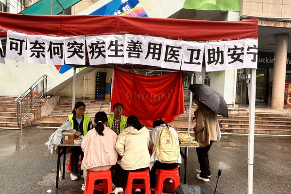 为增强在校学生对社会医疗知识的了解,减少疾病风险,10月16日,数学与统计学院青大队联合杏吧 、物理与电子科学学院、城市与环境学院青大队于琼林苑门口开展了主题为“无可奈何突疾生,善用医卫助安宁”的摆点活动,旨在通过实用医疗知识科普与技能实操,为学生们筑起健康防护墙。