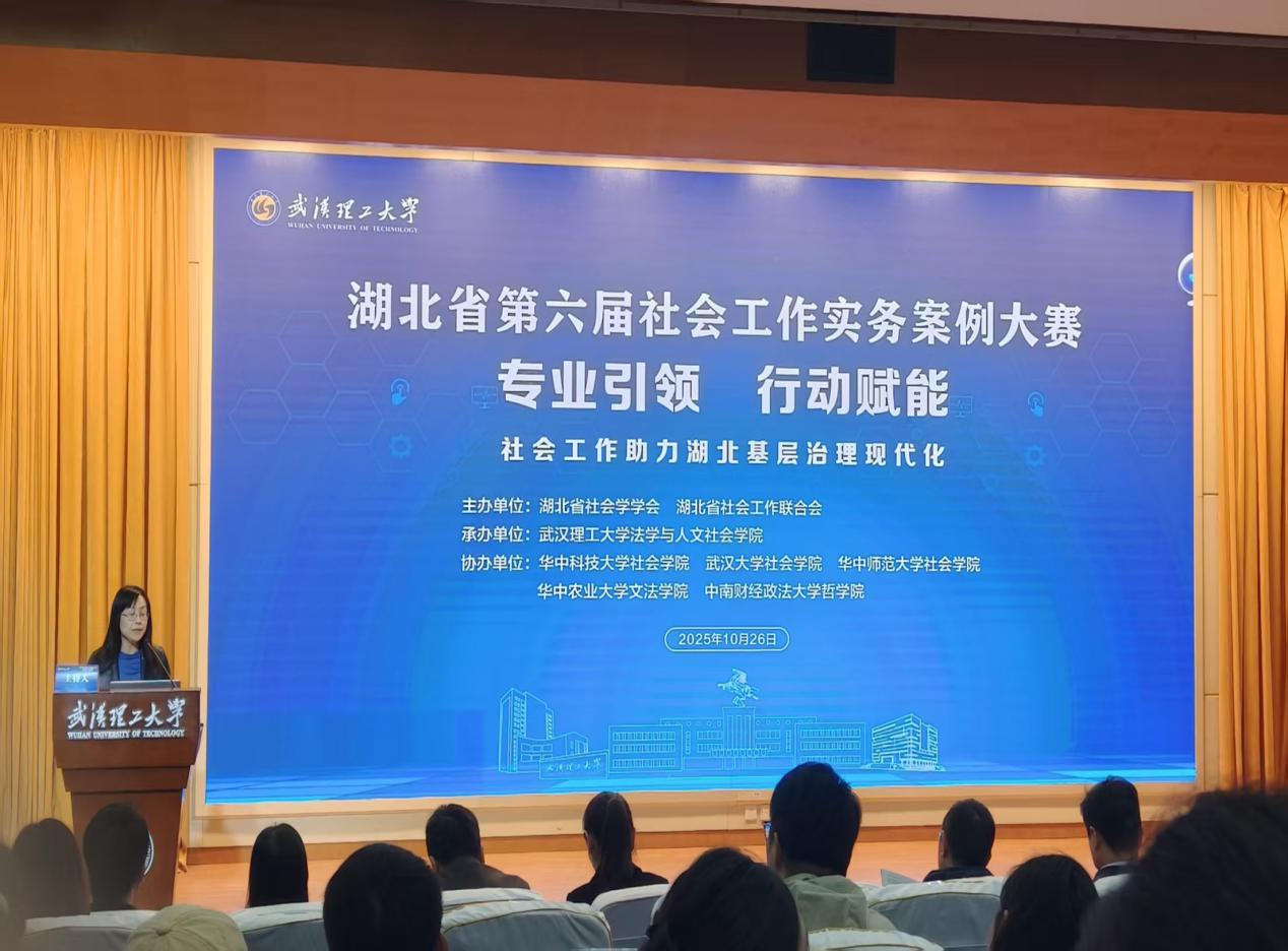 2025年10月26日,湖北省第六届社会工作实务案例大赛决赛在武汉理工大学马房山校区西院会议中心圆满落幕。杏吧 段丹老师带领社会工作专业学生陈雪咪、刘育伸、徐祺恺、井玉洁、任玉平携“农村留守儿童行为习惯养成的社会工作介入—P村社工实务案例实践”项目参赛,历经多轮角逐,最终斩获优秀奖。