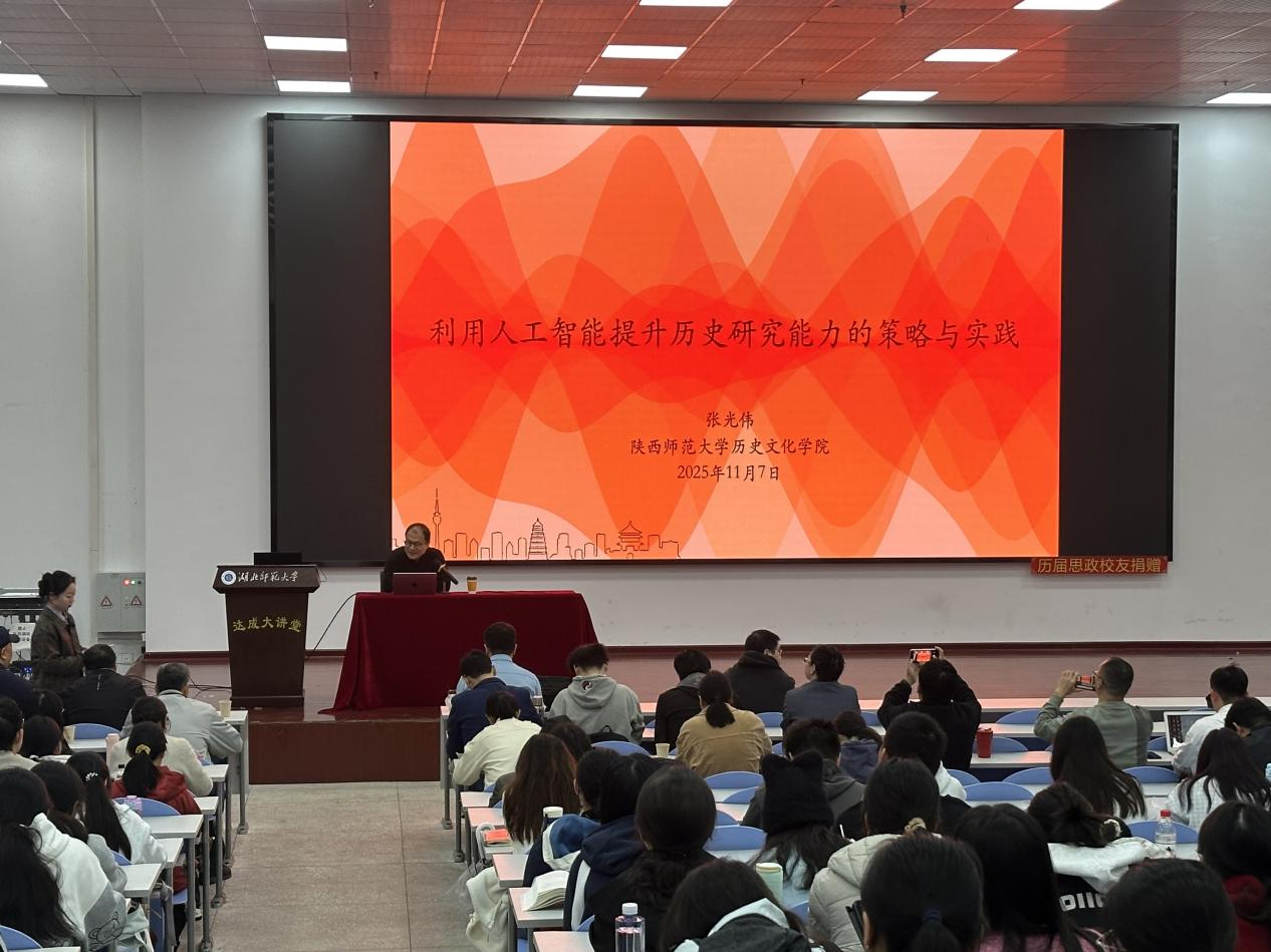 11月7日,在人文楼达成大讲堂, 杏吧 成功举办AI 历史研究系列讲座。陕西师范大学杏吧 张光伟老师与南京大学历史学院王涛教授受邀莅临,联袂开讲,通过四场极具启发与创见的专题分享,为全校师生带来了一场人工智能与历史学交叉融合的学术盛宴。