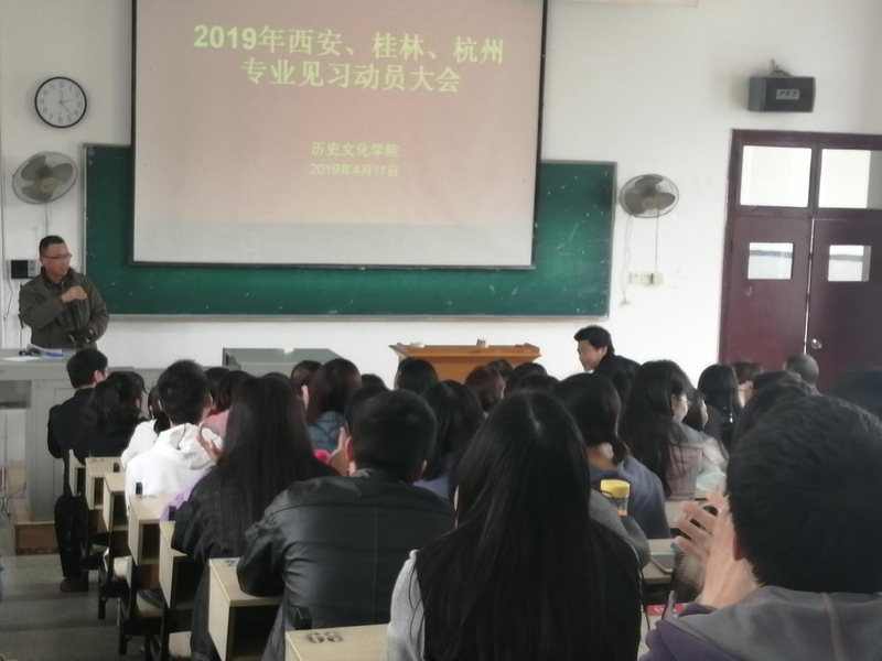 2019年4月11日, 杏吧 在教育大楼1J22举办“2019年西安、桂林、杭州专业见习动员大会”。城市与环境学院杨书记,杏吧 院长张泰山、副院长钟祥虎、副院长李柏林、副书记冯文娟、李建刚、尚平和陈乐保等老师,及城环学院1603班、杏吧 1601班、1704班和1804班学生参与本次会议。