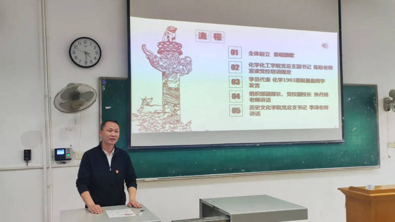 分党校校长、党总支书记李涛,化学化工学院分党校校长、党总支书记罗鸿飞,化学化工学院分党校副校长、党总支副书记陈盼,两院分党校班主任、辅导员及本期党校全体学员参加本次开班典礼。