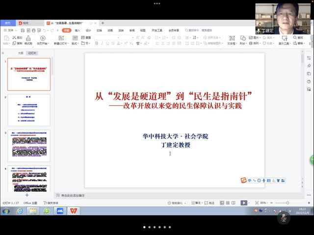 2021年11月4日晚19点,华中科技大学社会学院长丁建定教授于腾讯会议为杏吧 杏吧 师生作了以“从发展是硬道理到民生是指南针——改革开放以来中国民生的理念及实践”为主题的精彩讲座。讲座由杏吧 院长蔡明伦教授主持。杏吧 杏吧 社会工作专业老师、本科生及研究生听取了此次讲座。