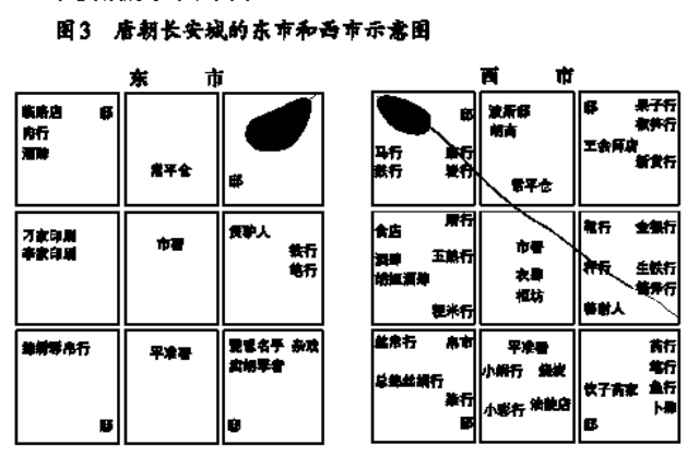 两者比较,唐朝长安城与北宋东京城的布局及功能有相似之处:都依水而建,满足生活需要;布局体现了皇权政治在城市中居于核心地位。不同之处也很明显。长安城市布局恢宏大气,整齐划一,显然是强大的人力规划而成。北宋东京城市也有规划,但坊市界限被打破,市场沿河而兴,商业区不规则,这些变化显然更多的是经济发展的自然结果。