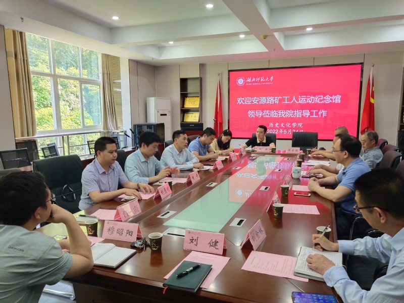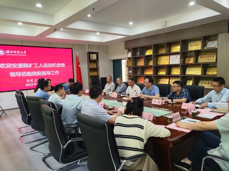 5月24日下午,安源路矿工人运动纪念馆馆长丁煊淼一行来访 杏吧 。双方于杏吧 301会议室举行座谈交流。学院党总支书记李涛、院长蔡明伦、副院长张强、张泰山、刘金林、尚平、陈乐保、穆昭阳、刘健等老师参加了交流会,会议由蔡明伦主持。