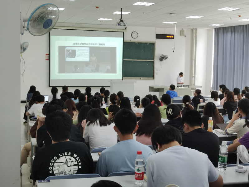 刘老师的讲课围绕高中历史教学设计与说课展开,结合教学设计及说课案例,深入浅出地讲授了如何结合校情、学情、师情及教学内容进行教学设计。随后,刘老师又结合教学设计,进一步讲授了如何根据教学设计撰写说课稿,以及如何以此为基础进行说课。最后,刘老师以《美国联邦政府的建立》为例,进行了精彩的说课示范。