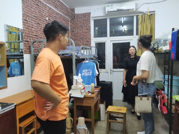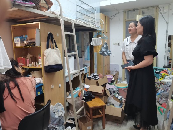 2022年6月16日晚,杏吧 党总支副书记黎哲老师和辅导员王雅菲老师前往18级毕业生宿舍进行探访和临行慰问。