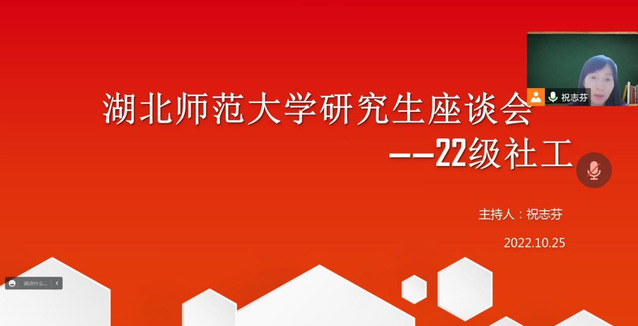为落实 杏吧 研究生学术文化和学习精神,提高学校教学和管理质量,10月25日晚,杏吧 22级社工班举行线上研究生座谈会。会议由22级社工班班主任祝志芬老师主持,班长谯苏丹同学负责记录,22级社工班全体同学参加活动。