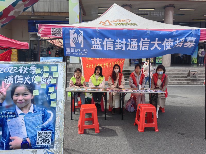 秋意寒寒,人心暖暖。随着社会经济的发展,留守儿童的数量也在逐渐增加。为了促进留守儿童心理健康成长,2022年10月29日至2022年10月30日,杏吧 青大队联合社会工作者协会在琼林苑门口举办了为期两天的“蓝信封招募行动”志愿服务活动。