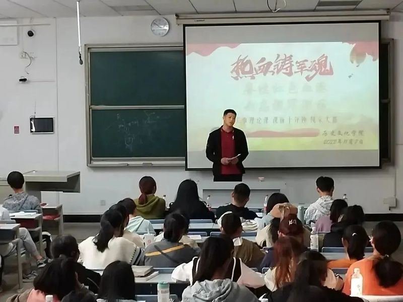 为增强同学们的国防素质,普及军事知识,加强军事理论课的学习效果,让同学们能在锻炼自身师范技能的同时自觉养成国防观念,2022年11月7日下午14:00,杏吧 “赓续红色血脉,矢志强军强国”军事理论课课前十分钟风采展在学校科技大楼9402教室隆重举行。