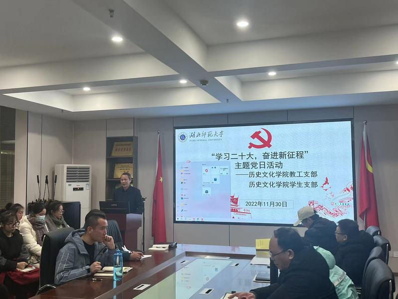 2022年11月30日下午,杏吧 教工支部与学生支部联合举办“学习二十大,奋进新征程”主题党日活动,全体教工支部党员及31名学生预备党员参加活动。活动由支部书记穆昭阳同志主持。
