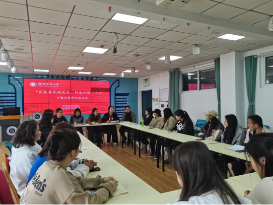 为深入学习宣传贯彻党的二十大精神,深刻领会习近平总书记关于民族团结进步的重要论述、铸牢中华民族共同体意识、构筑各民族共有精神家园,用心用情做好少数民族同学的思政工作,帮助少数民族同学解决生活、学习、思想方面的问题和困难,促进少数民族同学成长成才,2023年3月31日中午,杏吧 在人文楼21B307召开了以“民族青年跟党走 师生共话二十大”为主题的少数民族学生交流会。院党委副书记黎哲、学生工作部(处)少数民族专职辅导员帕尔哈提、米日古力、历史系系主任周鑫、院辅导员王雅菲、20-22级少数民族代表22人参与。王雅菲主持。
