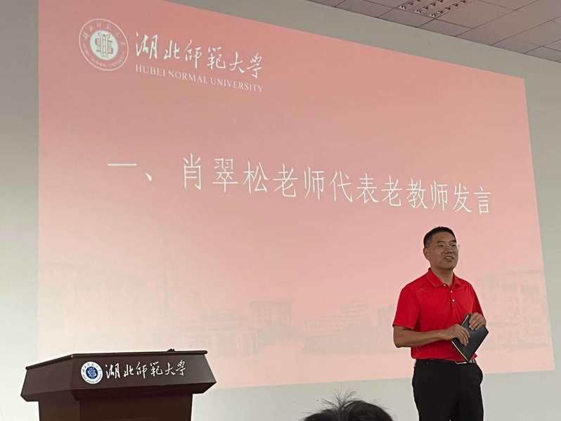 座谈会上,肖翠松代表学院骨干教师发表全英文演说。他首先对23级新生的到来表示热烈欢迎,并从学院的历史、文化、师资队伍等方面向同学们介绍了学院情况。他谈到学院拥有高水平的师资力量,注重培养学生的实践能力和综合素质。并且希望同学们与学校、学院协同配合,共同关注学生学业发展、身心成长,全面推动学生成长成才。