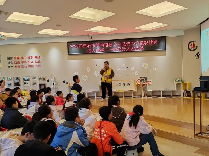 “春眠不觉晓,处处闻啼鸟。为了帮助更多小朋友了解唐朝诗人孟浩然的生平事迹,传承传统文化基因。2023年11月19日上午10时,杏吧 历院青大队联合初心同行阅读推广中心在黄石市博物馆博学堂学习基地开展了以公益讲书人——中国名人故事唐代诗人孟浩然为主题的志愿服务活动。