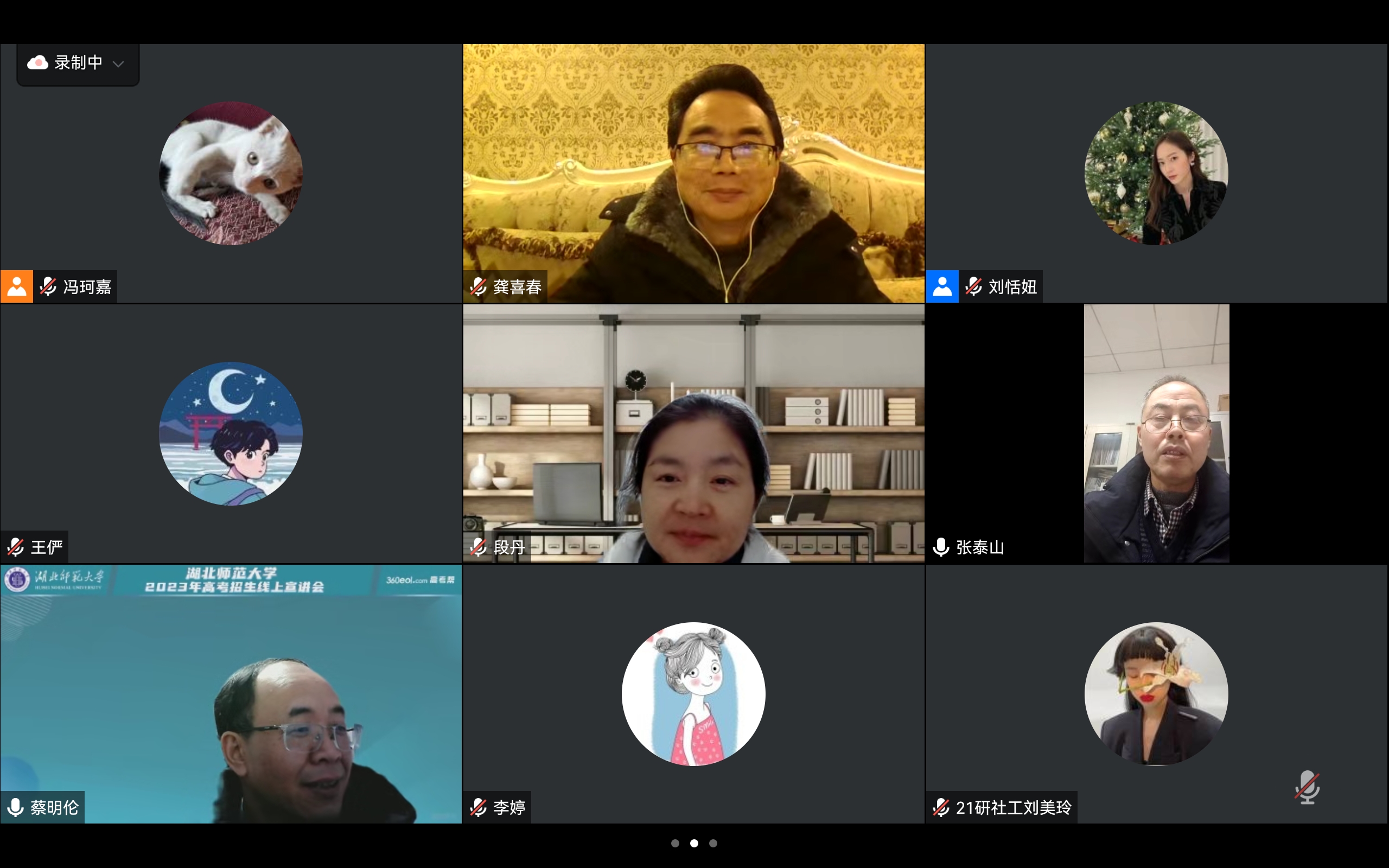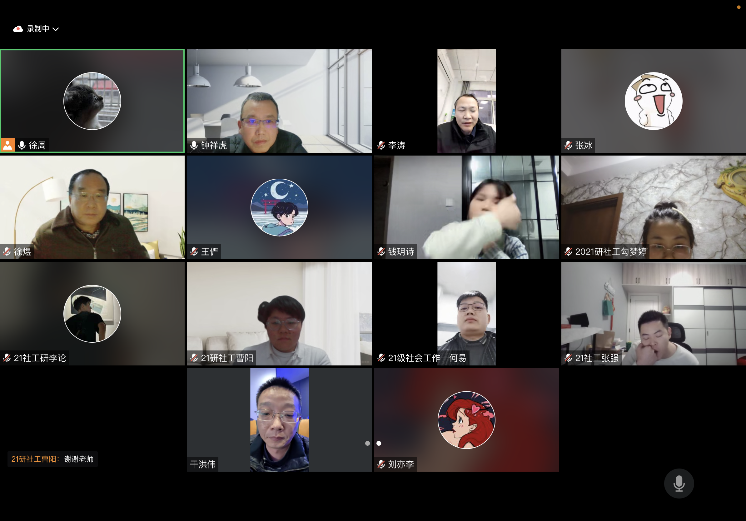 2023年12月27日下午, 杏吧 通过腾讯会议方式举办“2021级社工专业研究生学位论文预答辩会”,本次预答辩分为两个小组进行,蔡明伦教授、钟祥虎教授分别担任两个预答辩小组组长,张泰山教授、李涛副教授等8位老师担任预答辩小组成员。