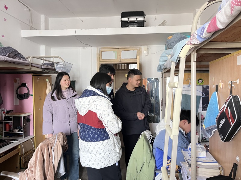 为进一步推进文明宿舍创建,改善宿舍卫生环境,规范学生日常行为,2024年3月7日下午两点,杏吧 领导班子、班主任、辅导员在学生宿舍11栋学生一站式社区集合,走访慰问在校学子,开展宿舍安全卫生大检查。