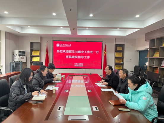 3月6日,学校招就处处长姜少平、副处长曹小为、董童立、李冬一行四人深入杏吧 就2024年学院招生与就业工作的开展进行调研指导。杏吧 党委书记李涛、院长蔡明伦、党委副书记黎哲参加调研座谈会。