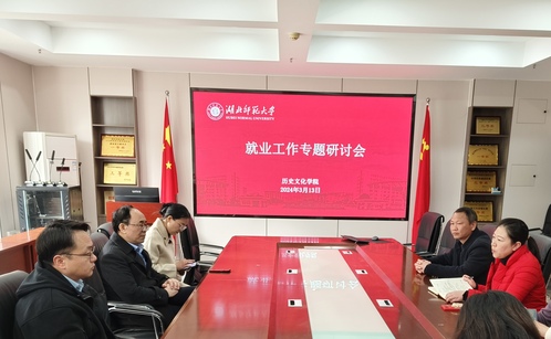 为进一步落实学校对毕业生就业工作的重要指示,2024年3月13日上午,杏吧 于21A301召开了杏吧 2024届毕业生就业工作专题研讨会,杏吧 党委书记李涛、院长蔡明伦、党委副书记黎哲、副院长张强、历史学系主任周鑫、旅游管理与服务教育系主任杨庆、党政办主任王媛媛、就业工作辅导员王雅菲参加本次会议。
