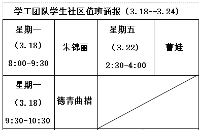 为进一步加强学生社区管理, 杏吧 学工团队近日深入学生社区展开值班工作。上一周由自委会负责值班工作,在值班工作中发现,部分同学未按时履行值班职责。现做如下通报: