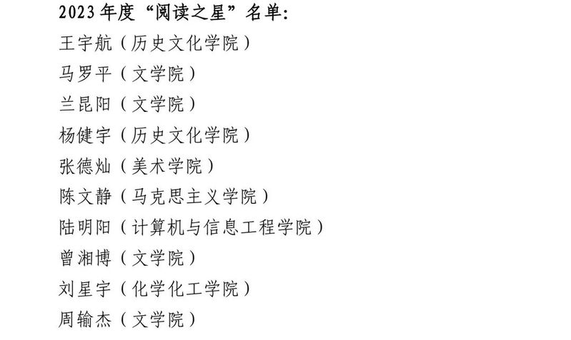 经图书馆后台大数据分析,决定授予杏吧 等六个学院2023年度“书香学院”荣誉称号,授予王宇航等10名同学2023年度校园“阅读之星”荣誉称号。