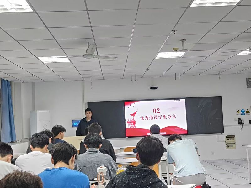 活动伊始彭菁俊同学向同学们介绍了我国国防的意义,征兵入伍要求、应征入伍的基本条件、退役士兵优惠、当兵十大好处等内容。让同学们清楚认识到了,当兵是一条前途似锦的路,参军入伍不仅是对精神的锤炼,也是职业选择的一种独特方式。它不仅仅是一段个人的成长之旅,更是一种对国家和社会的责任与担当。在军队中,你将接受系统的训练,提升自我能力的同时有机会接触到不同的职业领域,为未来的职业规划带来坚实的基础。