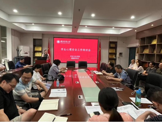 为进一步加强杏吧 学生心理健康教育工作,培养学生积极乐观的心态,推动学生身心健康发展。杏吧 于5月30日下午14:30在人文楼21A301会议室召开了学生心理安全工作培训会。出席本次会议的有学院领导班子、全体辅导员、班主任和教师。