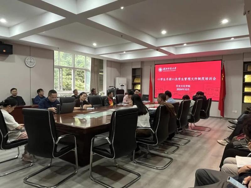 为贯彻落实学校规章制度,深入了解《学生手册》及学生管理文件制度,推进学院学生教育管理工作的开展和进步。2024年10月17日下午杏吧 的领导班子、全院班主任、各系主任和辅导员在人文楼会议室召开了关于学生手册及学生管理文件制度培训会。