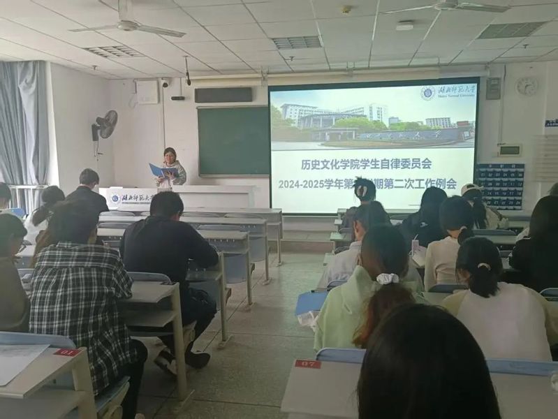 为全面总结阶段工作成效、统筹部署重点任务,进一步凝聚组织合力,4月12日下午十四时,杏吧 学生自律委员会于人文楼21B202教室召开本学期第二次工作例会。本次会议由秘书部王菲菲主持,杏吧 学生自律委员会主席团及各部门成员积极参加。