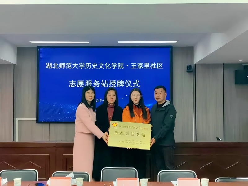 活动伊始,主持人介绍了双方合作背景及到场嘉宾。学院党委副书记黎哲在致辞中强调,志愿服务是高校落实立德树人的重要载体,服务站将依托历史文化专业特色,开展文化宣讲、社区帮扶等多元化服务,助力基层治理。随后,双方代表现场签署了《志愿服务合作协议书》,明确责任分工与长期协作机制。在庄重的授牌环节,学院党委副书记黎哲、辅导员郑甜甜与王家里社区党委书记余立青、黄石市委宣传部调研员李疆宁共同为“志愿服务站”揭牌。社区党委书记余立青表示,服务站将为社区注入新鲜活力,期待学院志愿者在文化传承、老年关怀等领域提供精准服务,共建和谐社区。活动最后,全体嘉宾与志愿者代表合影留念,镜头记录下校地合作的温馨时刻。此次授牌仪式不仅是一次简单的挂牌,更是双方深化资源共享、实现互利共赢的郑重承诺。