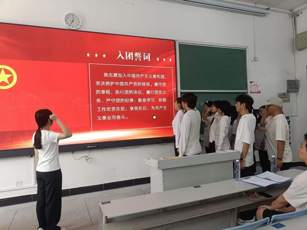 最后,仪式在激昂的《中国共青团团歌》中落下帷幕。此次入团仪式不仅为团组织注入了新鲜血液,更激励广大青年以更加昂扬的姿态投身学习和实践,在实现中华民族伟大复兴的征程上贡献青春力量。