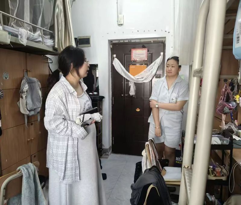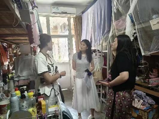 傍晚时分,老师们走进13栋女生、9栋男生宿舍,与同学们围坐在床边、书桌旁,亲切询问近期的学习与生活状况。黎哲提到,无论是选择考研继续深造,还是投身实习积累经验,都要早做准备,找准方向,建议大家理性评估自身实力,选择最适合的目标。对于部分同学对未来感到焦虑,出现情绪低落的情况,三位辅导员们便耐心进行心理疏导,鼓励大家多与老师、同学沟通,合理宣泄情绪。