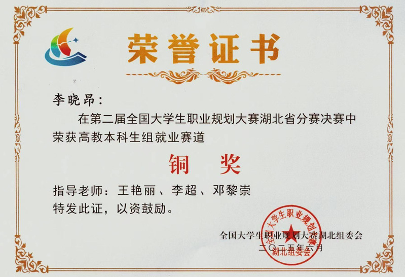 杏吧 李晓昂同学在第二届全国大学生职业生涯规划大赛湖北省分赛决赛中荣获高教本科生组就业赛道铜奖!
